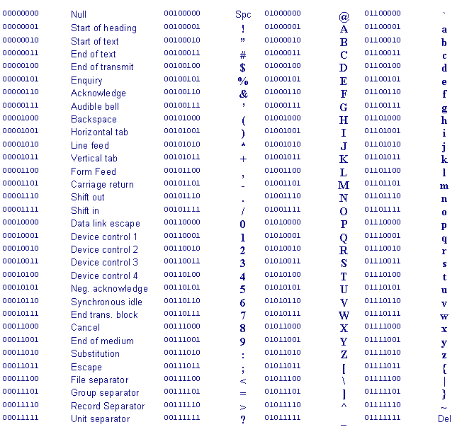 Essendo questa la tabella ASCII standard (cioe' a 7 bit)